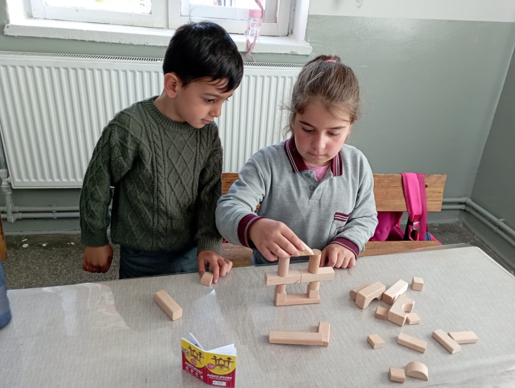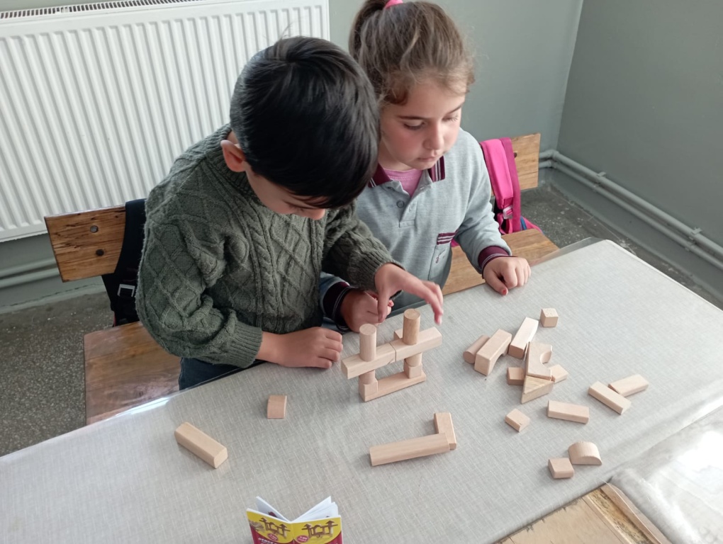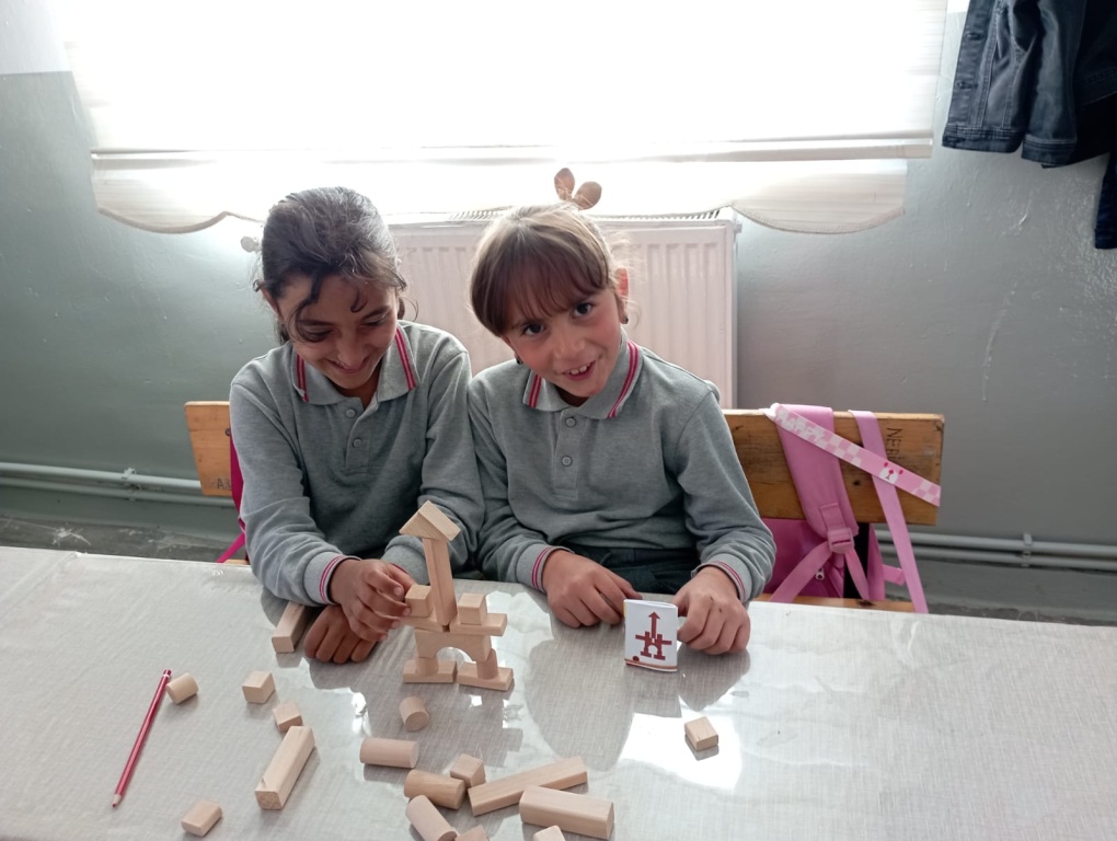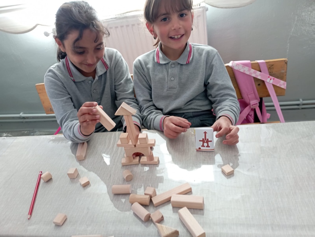 Etkinlikte öğrenciler, küp, dikdörtgenler prizması, silindir ve koni gibi geometrik cisimleri kullanarak farklı yapılar tasarladılar. Kimi öğrenciler ev, köprü ya da kule modelleri ortaya çıkarırken kimi öğrenciler de hayal güçlerini kullanarak özgün tasarımlar geliştirdiler.